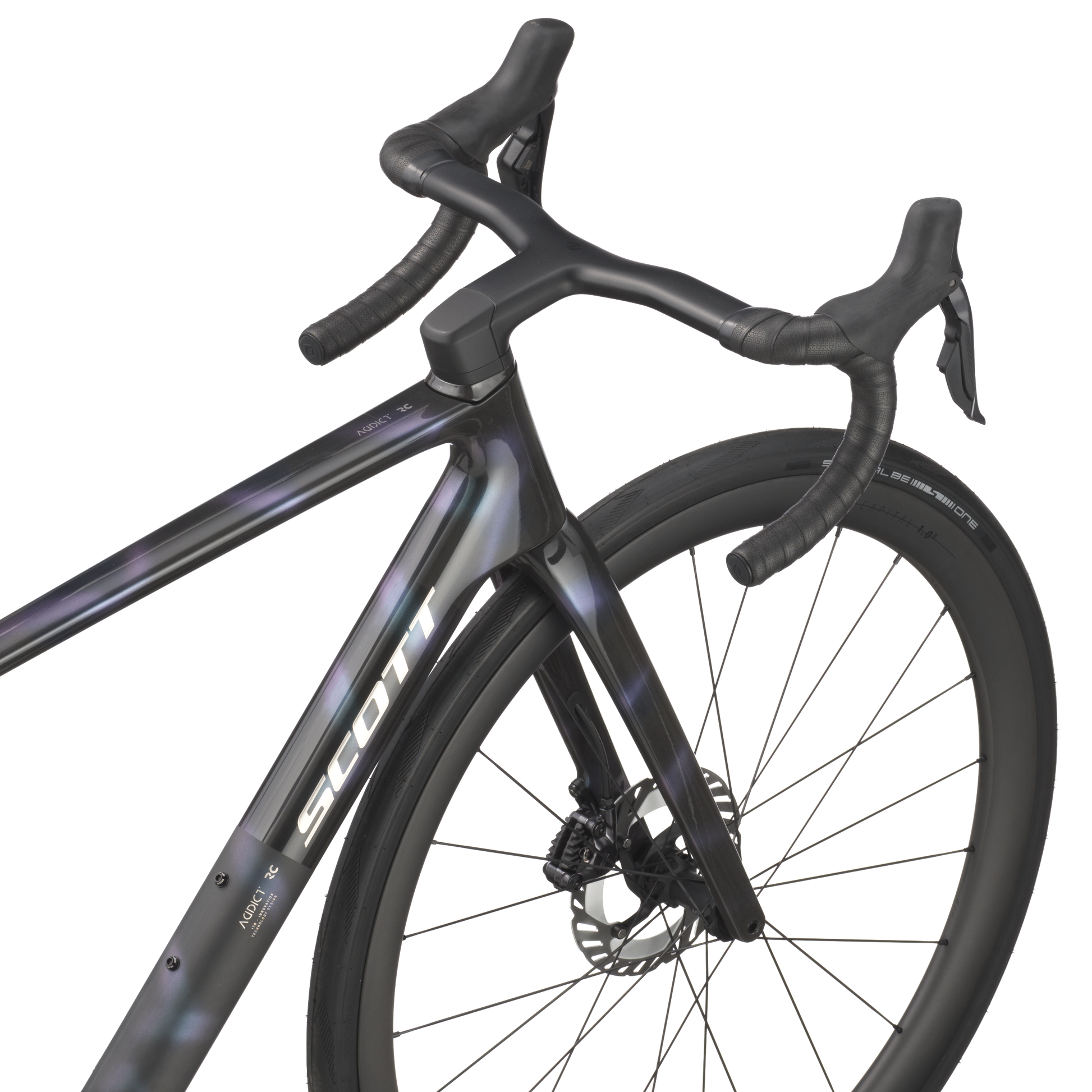 Equipado con el grupo máximo Shimano Ultegra DI2 a 24 velocidades, El Addict RC 10 ofrece una experiencia de caja de cambios fluida, instantánea e impecable. Enfrenta cada diferencia de altura con confianza gracias a la caja 11-34t y junta compacta 52x36t, sabiendo que la caja de cambios electrónica nunca te decepcionará, independientemente de la presión.
