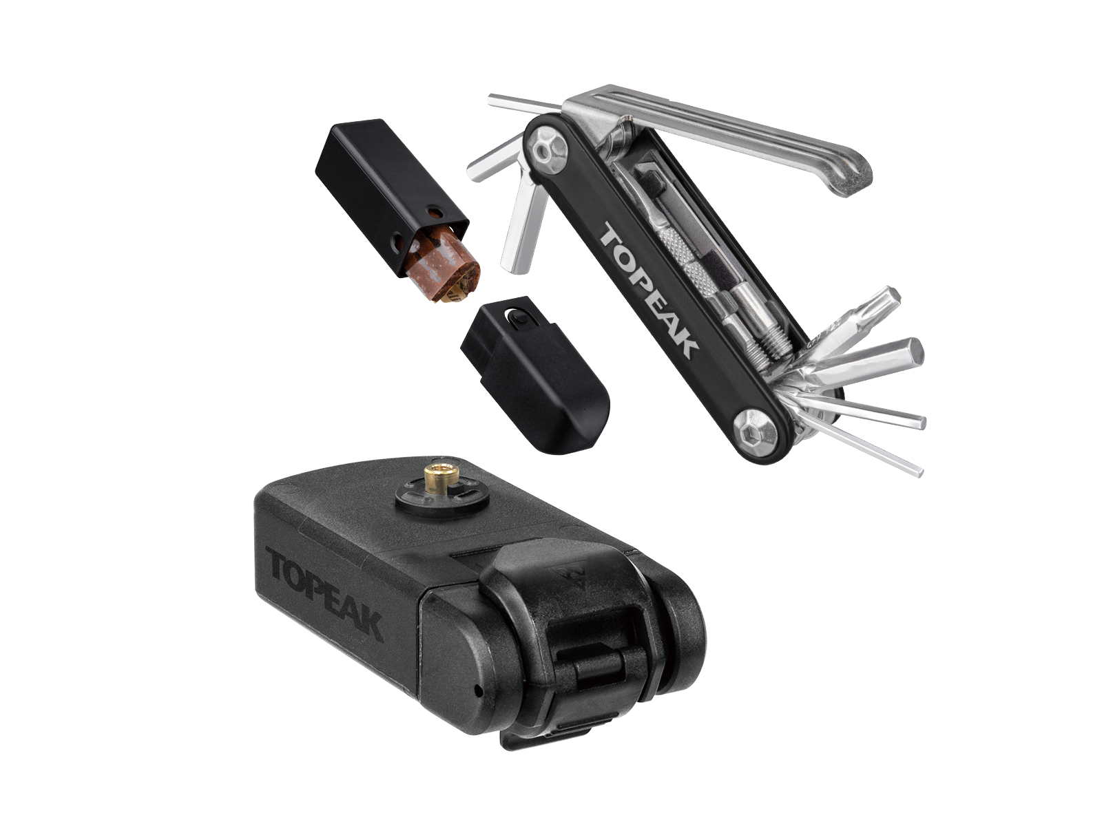 Si monta sotto il portaborraccia Ninja con il supporto per gabbia intercambiabile o si utilizza da solo con il supporto per telaio.   Questa cassetta degli attrezzi resistente alle intemperie contiene un mini strumento per la riparazione di pneumatici tubeless da 11 funzioni e una custodia PlugBox con 5 pezzi di tappi da 3,5 mm x 5 cm per la riparazione di pneumatici e la manutenzione di bici da strada o da pista.